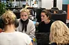 Her jobber de med oppgaver og skravler før og etter dagens forelesninger. Arbeidsøktene er som oftest minst åtte timer hver dag, sier de.