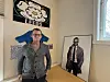 Vi går inn til hjørnet av kontoret, der det står oppstilt et kjempestort bilde av en barsking — kontorinnehaveren selv.