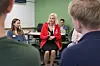 Forsknings- og høyere utdanningsminister Sigrun Aasland (Ap) besøkte Realfagsbygget ved Universitetet i Bergen for å møte nye studenter.Foto: Glenn Jensen Mangerøy