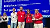 UiA (i rødt) ved kommunikasjonsdirektør Øivind Dagsvik Eskedal (t.v.), kommunikasjonsrådgiver Damares Stenbakk og grafisk designer Saara M. Ojanen. under prisutdelingen under EUPRIOs konferanse i Lisboa.. UiA/FORTHEM Alliance 37.000 har søkt om sletting av studiegjeld